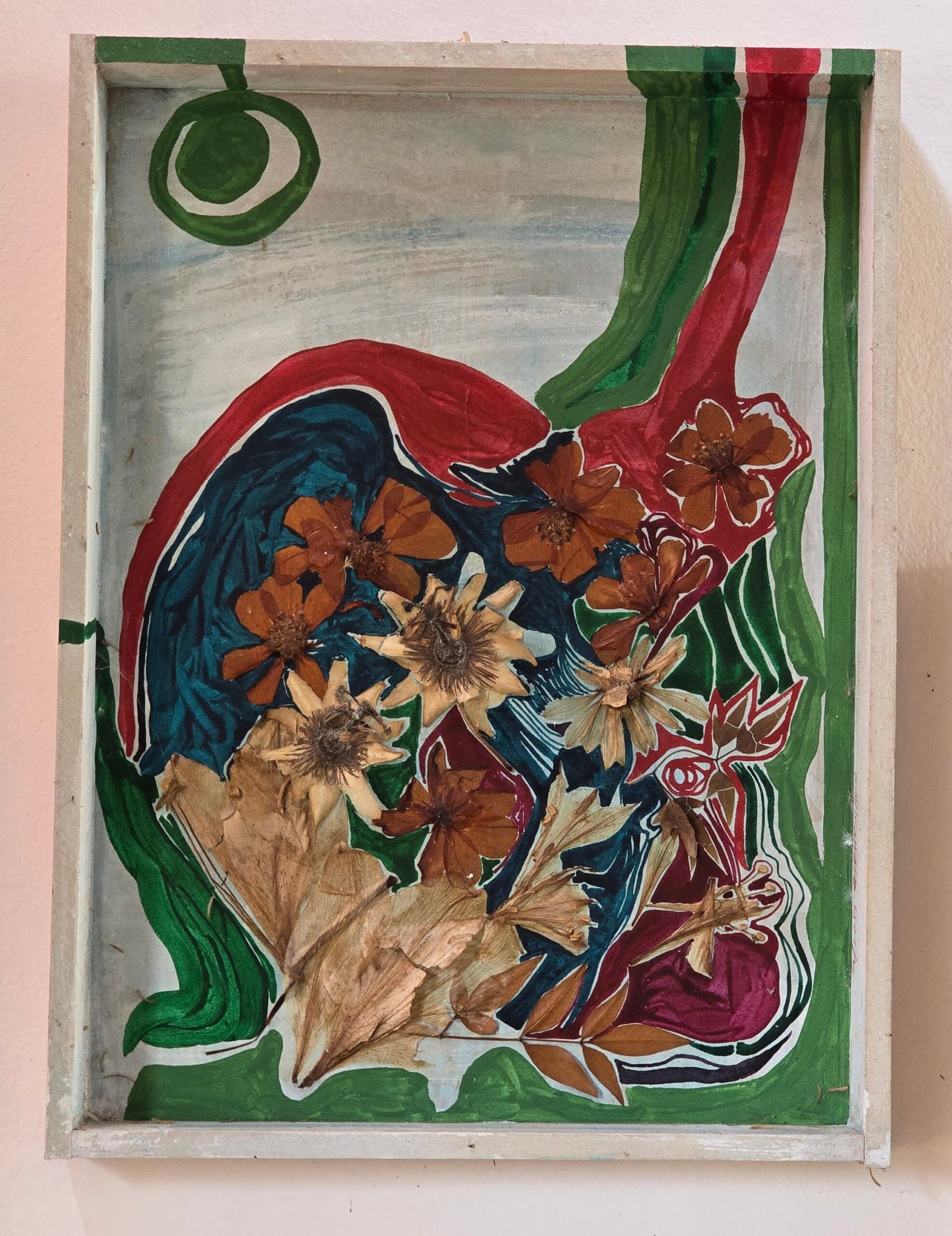 T: pintura y collage sobre madera